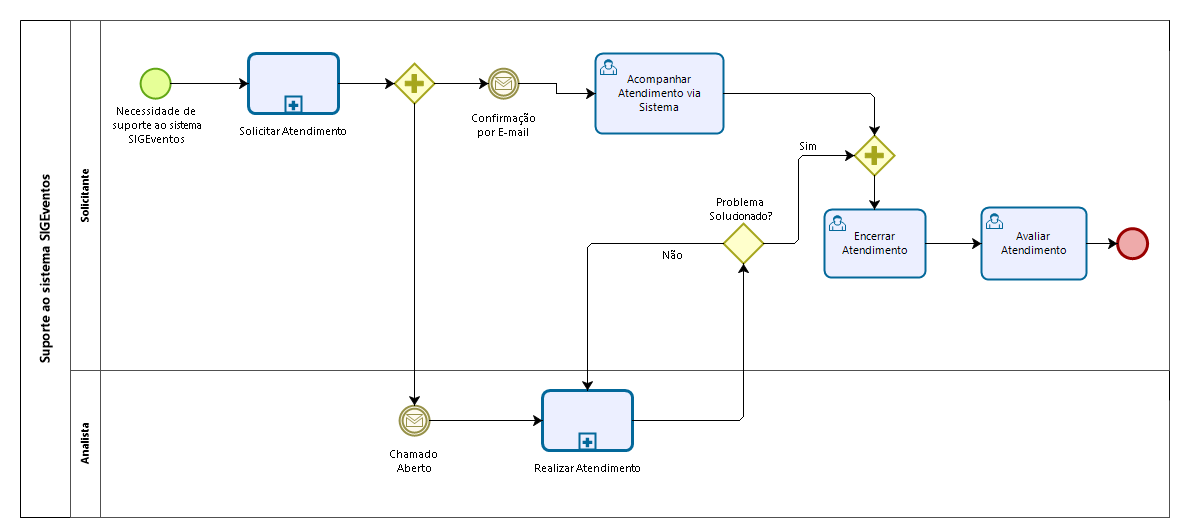 Fluxo de atendimento do serviço Suporte ao sistema SIGEventos
